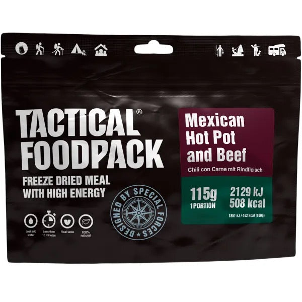 With its bold flavours, balanced nutrition and convenient preparation, Tactical Foodpack Mexican Hot Pot and Beef delivers a satisfying and energizing meal wherever you need it.